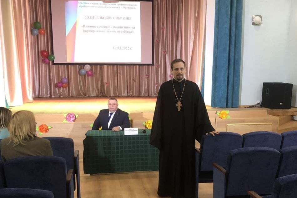 Священник Алексей Шмелев, настоятель храма Рождества Иоанна Крестителя, посетил родительское собрание в Агролесотехническом колледже аг. Буйничи. Отец Алексей рассказал родителям об источниках семейного кризиса, почему дети часто грубы и не слушают своих родителей, описал схему выхода из «натянутых», отметив главный критерий примирения, – любовь к своему ребенку. После выступления директор колледжа Михаил Владимирович Сосонко, а так же родители учащихся поблагодарили священника за интересную и содержательную беседу.