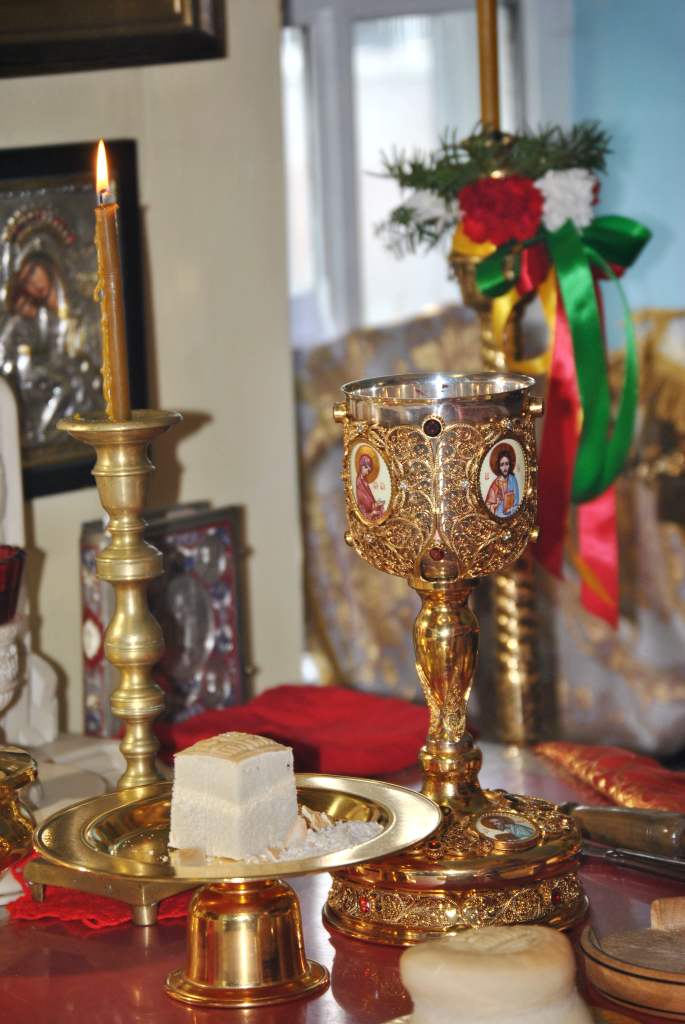 По окончании Литургии были совершены крестный вокруг храма и молебен Божией Матери, после чего состоялась праздничная братская трапеза.