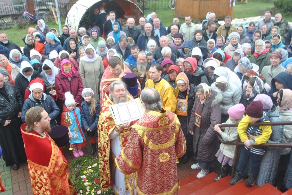 Божественную Литургию совершил архиепископ Могилевский и Мстиславский Софроний в сослужении: настоятеля храма протоиерея Сергия Маслова, протоиерея Андрея Рыбакова, иерея Игоря Шнейдера, иерея Андрея Жука, протодиакона Петра Жука. В Литургии приняли участие паломники, прибывшие крестным ходом из Могилева. После запричасного стиха Его Высокопреосвященство произнес проповедь.