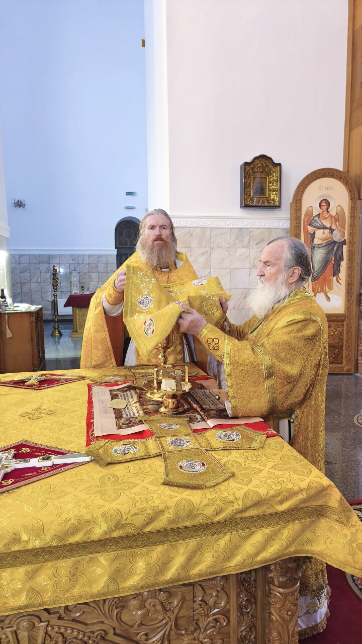 Его Высокопреосвященству сослужили: Анатолий Мельник, протодиакон Петр Жук, диакон Артемий Гатальский и диакон Андрей Бухенко. Богослужебные песнопения исполнил хор под управлением Светланы Михайловой. Проповедь произнес иерей Андрей Шаварин.