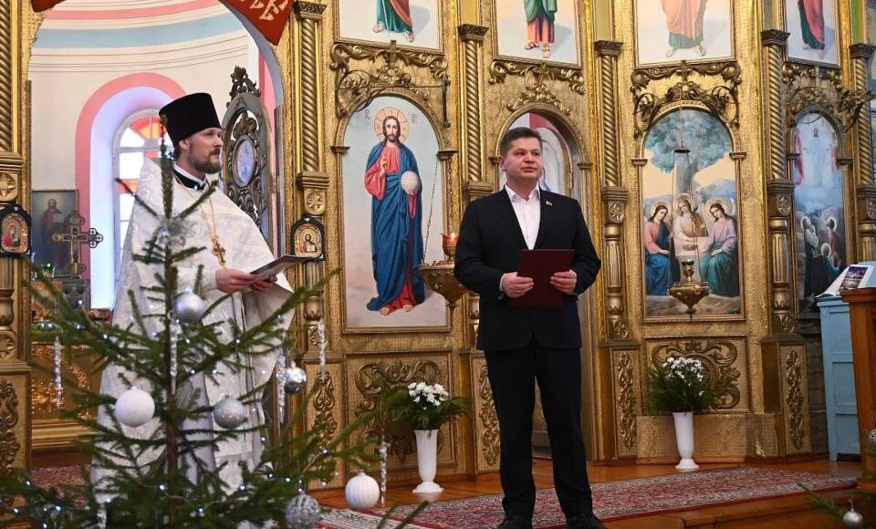 7 января в Хотимске председатель районного исполнительного комитета Александр Диваков посетил Свято-Троицкий собор.