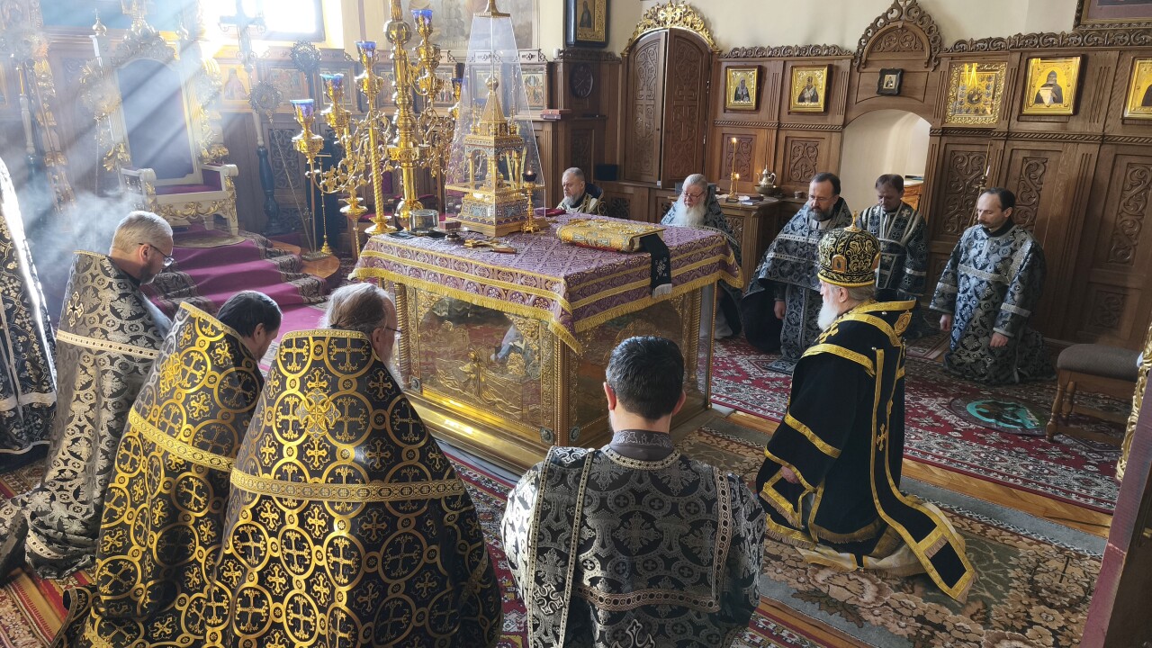 9 марта 2026 года, в понедельник третьей седмицы Великого поста, день воспоминания первого и второго обретения главы Иоанна Предтечи, архиепископ Могилевский и Мстиславский Софроний совершил Литургию Преждеосвященных Даров в Свято-Никольском женском монастыре города Могилева.
